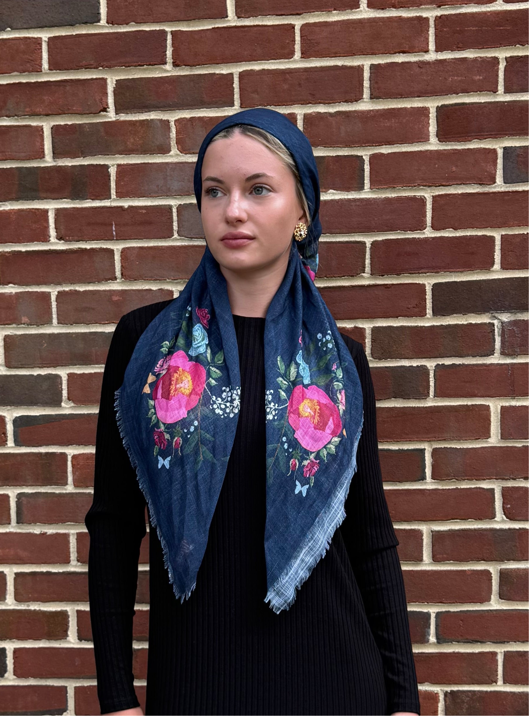 Dark denim Botanical headscarf